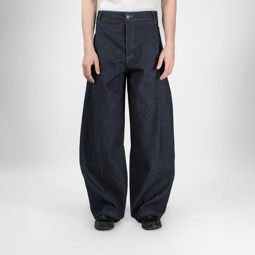 Made from raw Turkish denim, the Iki jean explores form through subtle construction rather than surface effect